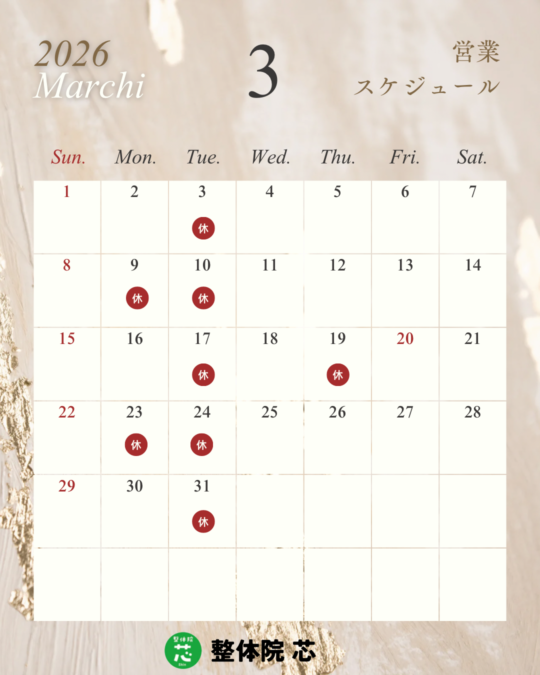 🗓️3月の定休日